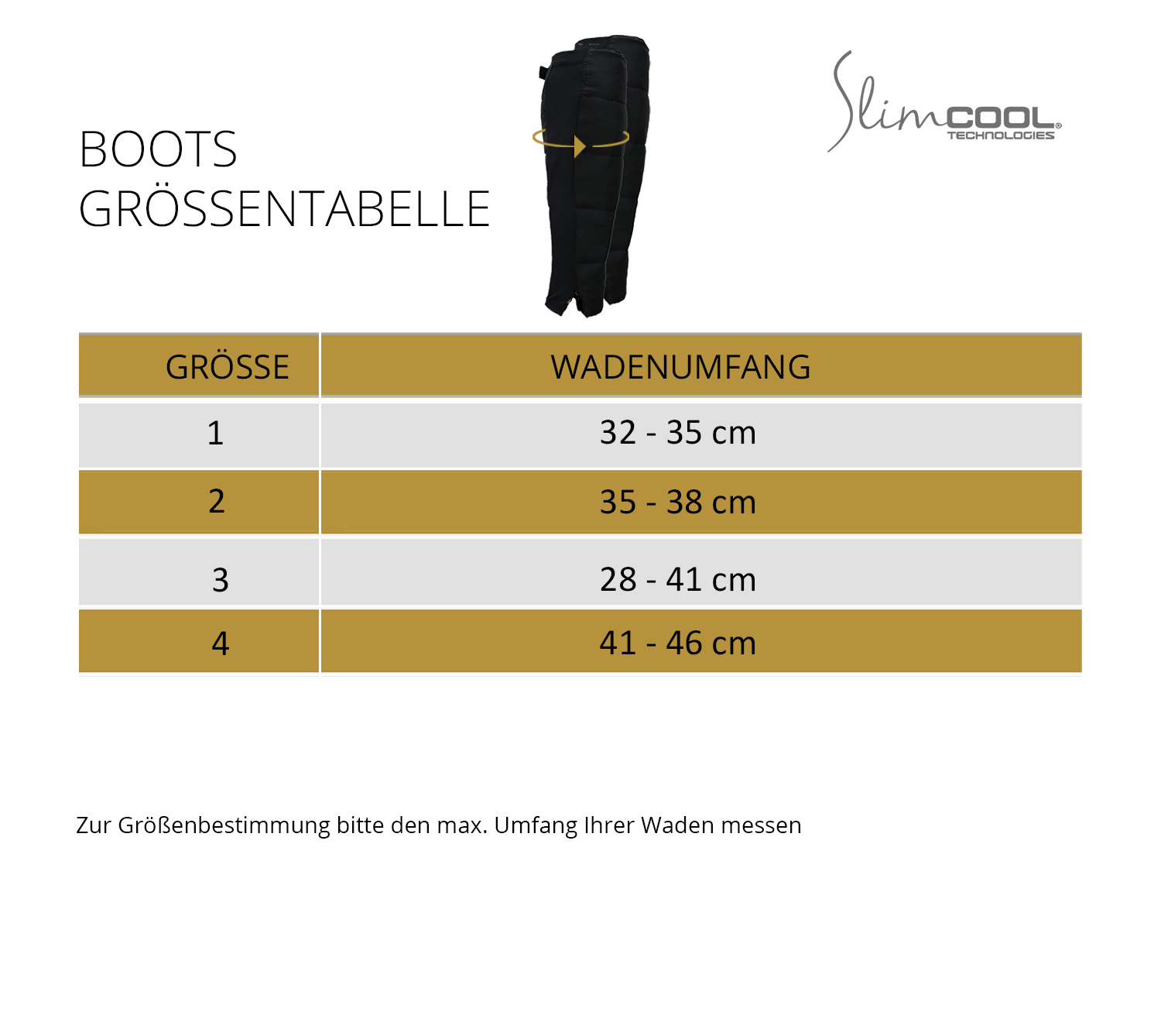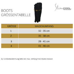The SlimCOOL PowerBoots are designed for everyone who wants to do something good for their calves. You can pull them over your knees or calves as needed. To achieve the best cooling effect, always combine them with the SlimCOOL ShapePants or the SlimCOOL PowerShirt so that the entire cooling surface is large enough. The Power Boots are available in 4 different sizes.